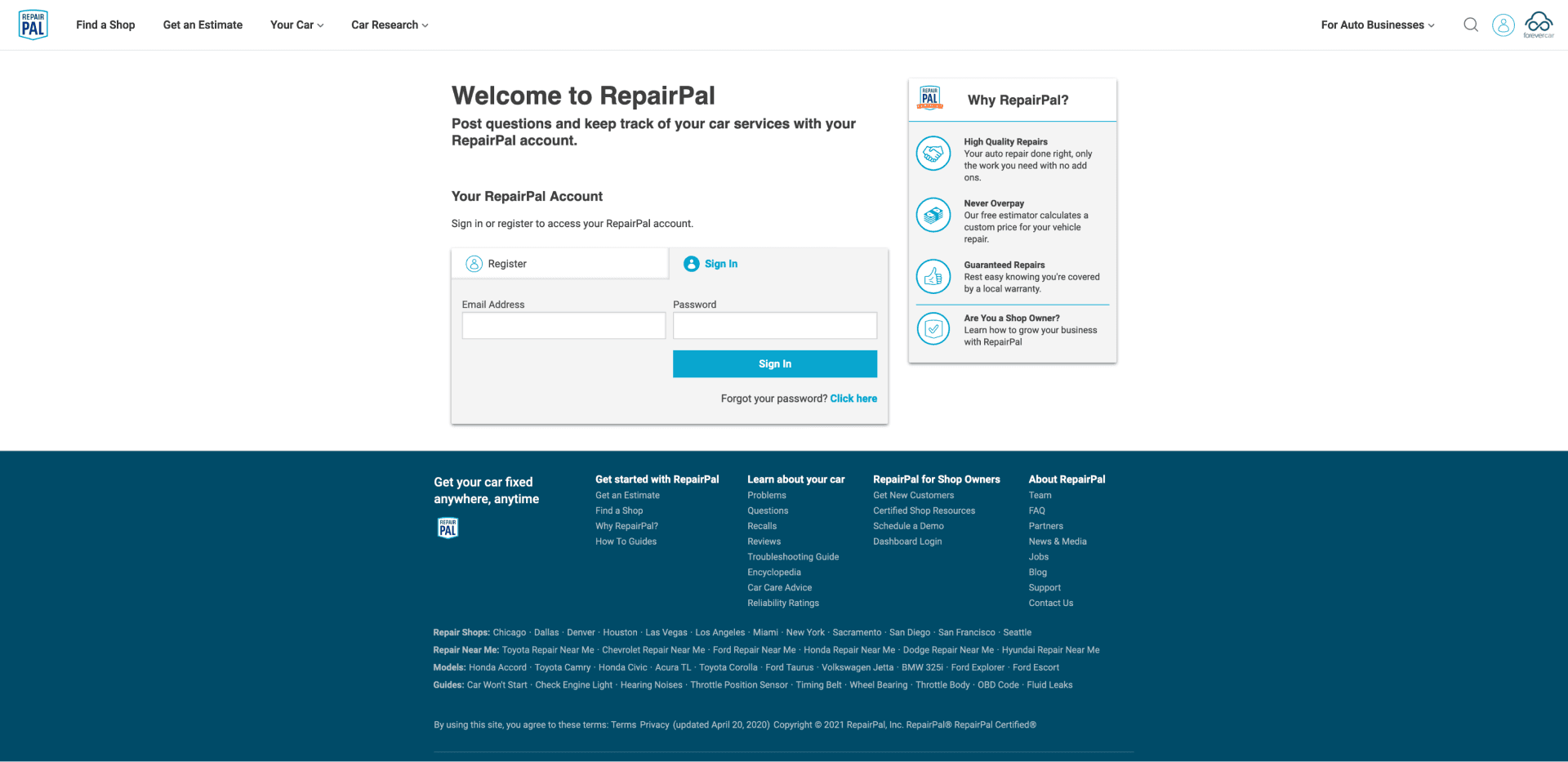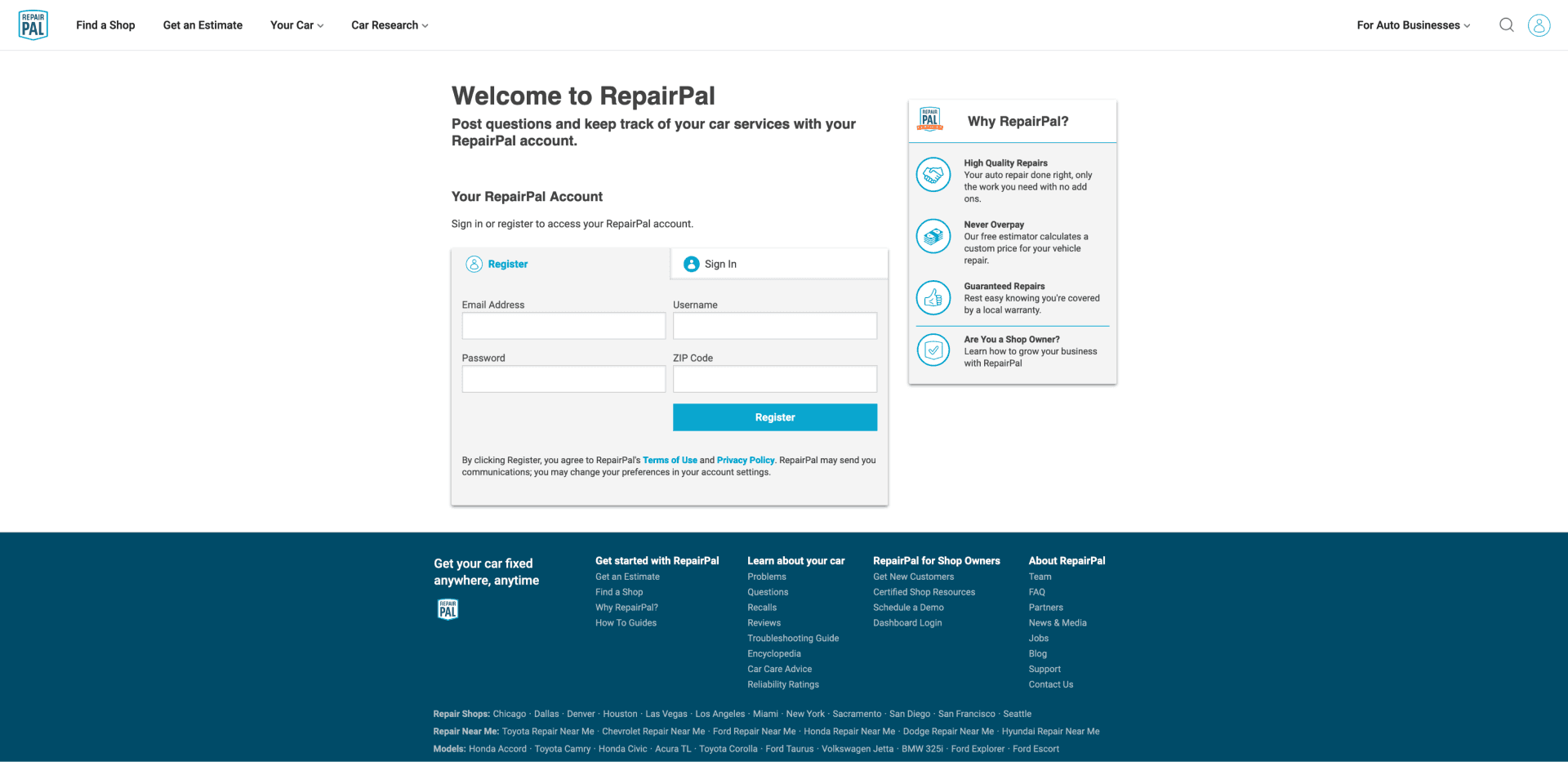 RepairPal.com helps car owners find reputable repair shops to perform a high-quality auto repair at a fair price. Additionally, with RepairPal's Fair Price Estimator car owners can get an accurate range of how much a specific repair would cost for their specific vehicle, avoiding overpaying for auto repair. RepairPal also features a lot of content around car ownership, repairs, reliability ratings, troubleshooting guides, and more to aid car owners in taking care of their vehicles.